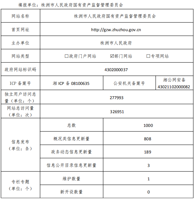 株洲市国资委门户网站工作2019年度报表