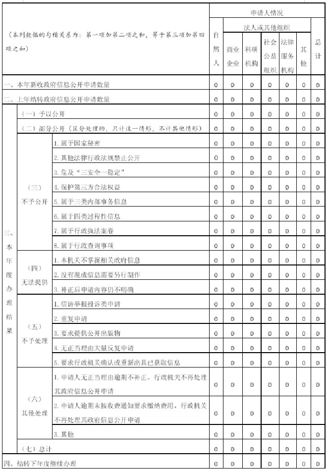 本年度报告根据《中华人民共和国政府信息公开条例》(以下简称《条例》)和国办公开办函[2021]30号文件的要求编制。本年度报告由总体情况、主动公开政府信息情况、收到和处理政府信息公开申请情况、政府信息公开行政复议、行政诉讼情况、存在的主要问题及改进情况、其他需要报告的事项六部分组成。