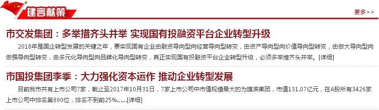 建言献策两则,市交发集团、市国投集团建言献策