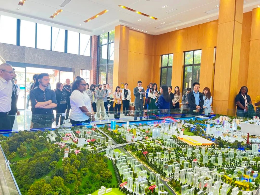 来自15个国家、17家媒体的中外记者 (中国国际电视台,人民日报社对外交流合作部、政文部、内参部、海外部,环球时报、新华社、光明日报、中国日报),在招商服务中心观看了片区宣传片,仔细聆听了清水塘片区的历史印象、搬迁改造、转型发展、产业导入的介绍,实地感受到了湖湘地区在共建“一带一路”大背景下经济建设和绿色发展的新成就、新经验,对清水塘片区转型发展的成果纷纷称赞。