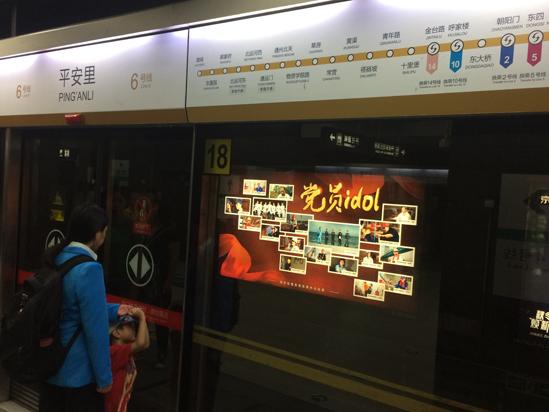 北京地铁6号线东四站里的“党员idol”公益海报