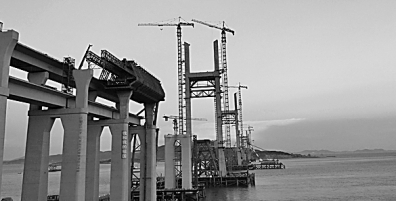 中国中铁大桥局建设的平潭海峡公铁大桥主塔日前封顶。(吴金霞 摄)