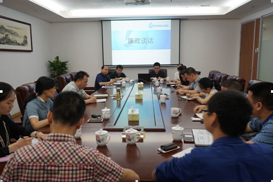 6月29日上午,国投集团董事长杨尚荣在公司1304会议室对10家全资、控股子公司一把手、集团财务部、投资部、工程部部长进行集体廉政谈话,纪委书记王志红出席,纪检监察室参与谈话并记录。