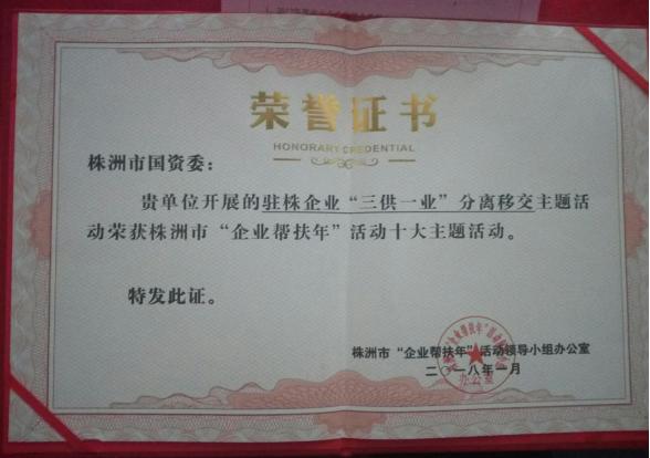 市国资委驻株企业“三供一业”分离移交主题活动荣膺株洲市“企业帮扶年”十大主题活动