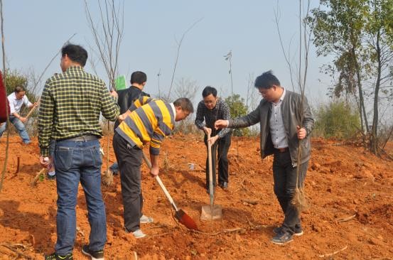 今年的3月12日,是第40个植树节。这天天气晴和,春阳高照。市国资委机关干部职工近30人来到天元区群丰镇长岭社区的一面山坡植树。这面山坡也是其他市直机关等部门的义务植树点。