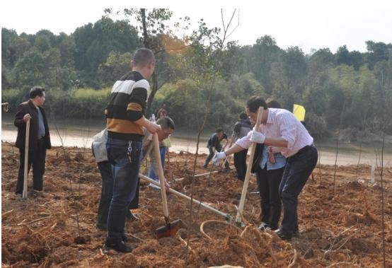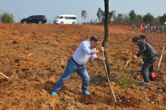 “绿水青山,就是金山银山。”植树现场,市国资委副主任欧阳光、刘建荣、市国资委调研员杨耀飞等委领导与大家一起挥锄铲土,培植树苗。菜花招展,红壤翻飞,汗水与笑容交织,绿色与希望同植。站在坡顶,看着刚刚植下的迎风摇曳的一列列树苗,大家都感觉到一股收获的喜悦潜然而生。