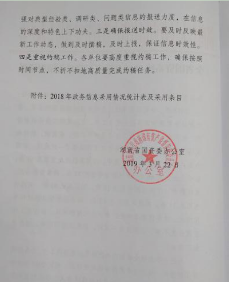 市国资委2018年政务信息采用情况排名全省市州国资委第一