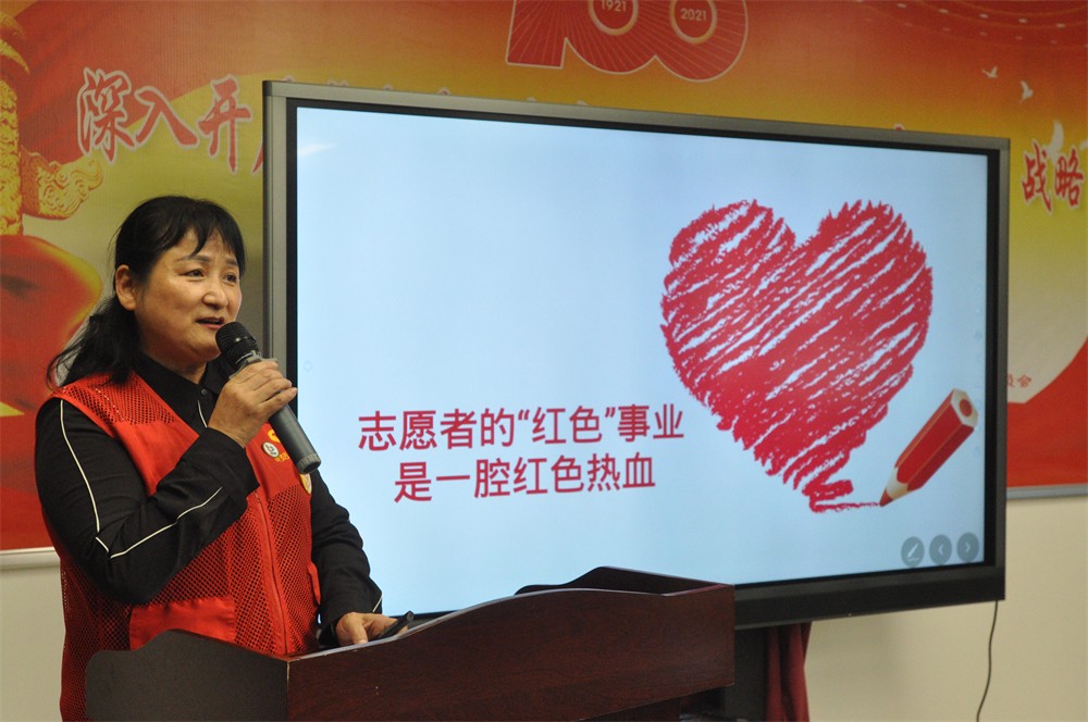 此次活动邀请了株洲市第四届道德模范、“湖南好人”田颖作主题演讲。田颖是原中盐株化集团公司的内退职工、中共党员,已过花甲之年的她,依然充满着自信与活力。她坚持无偿献血17年,累计献血8.86万毫升,相当于20个成年人的血液总量,是株洲市女子献血冠军。她还热心公益事业,积极参加各种志愿服务活动,目前担任株洲市荷塘区“小茨微檬”志愿服务中心理事长、党支部书记。