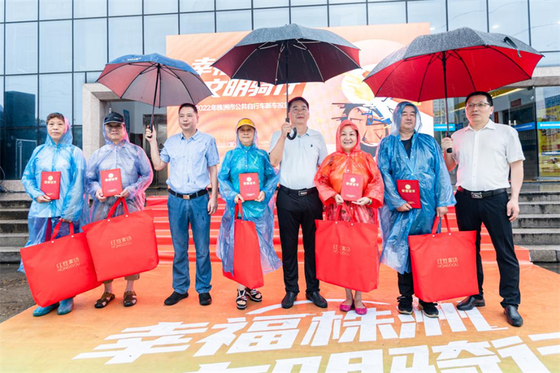 6月28日,“幸福株洲·文明骑行”2022年株洲市公共自行车新车投放仪式暨骑行活动举行,本次活动共投放2000辆公共自行车,进一步方便市民出行。市交通局党组书记、局长付访华,市交通局党组成员、总工程师胡志明,市财政局党组成员、副局长龚民民,市国资委、党委委员副主任罗贵斌出席仪式。