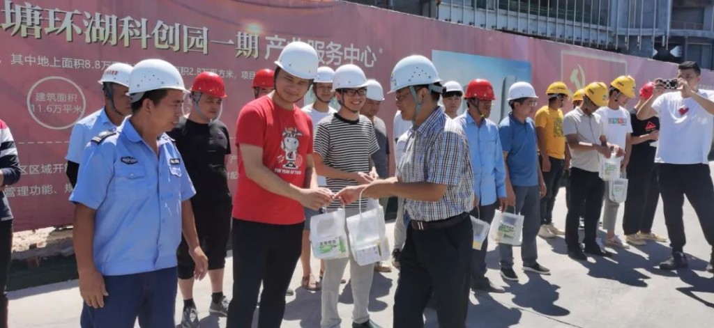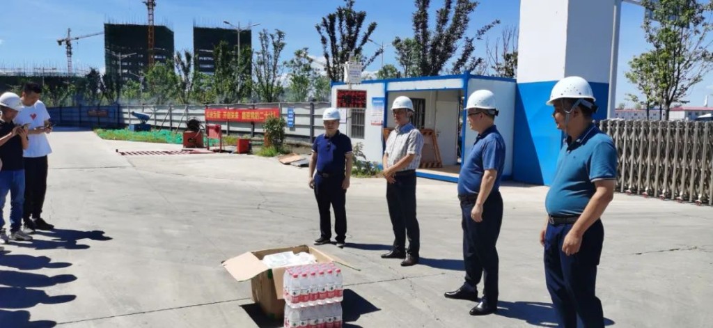 8月11日上午,市国资委党委委员、市纪委监委驻国资委纪检监察组组长李庆,市国资委工会负责人等一行赴清水塘环湖科创园项目部走访慰问一线职工,并送上防暑降温物质。