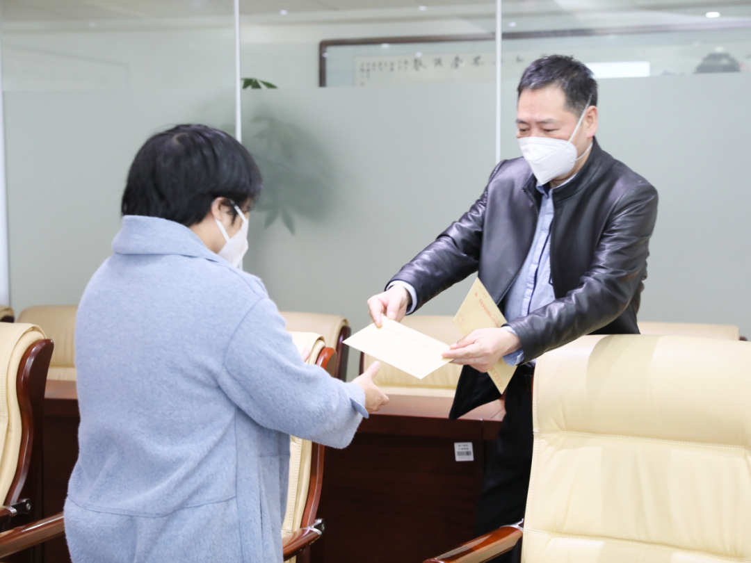 1月13日,市国资委党委委员、副主任言荣花代表市国资委对潍柴火炬、市规划设计院的生活困难党员、困难职工进行慰问。