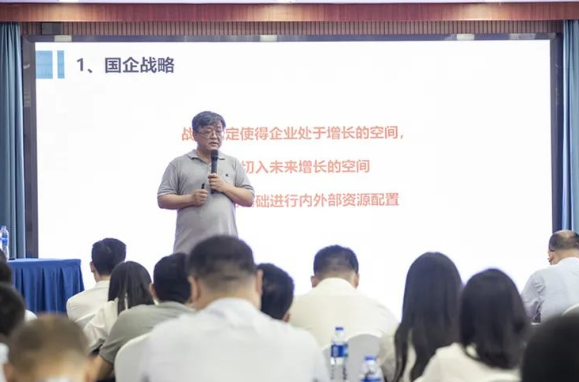 市城发集团外部专家董事、北京师范大学国家软实力评估中心副主任、华城智汇(北京)城市规划管理有限公司董事长、中国抗衰老促进会教育培训工作委员会总干事张飚教授给学员们开讲第一堂公开课《株洲地方国企发展战略选择的原理、方法和路径》。