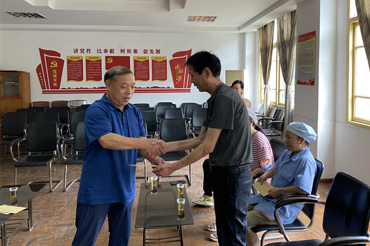 6月25日下午,市国资委二级调研员刘建荣赴市雪松公司慰问生活困难党员、老党员,并送去慰问金。法改科人员陪同慰问。