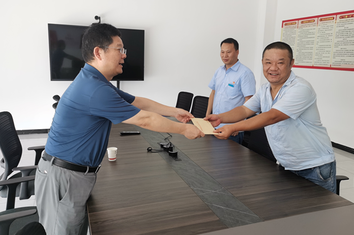 6月29日下午,市国资委原资本合作处处长郭正华赴外省驻株维柴火炬科技股份有限公司慰问生活困难党员,并送去慰问金。党建工作科人员陪同。
