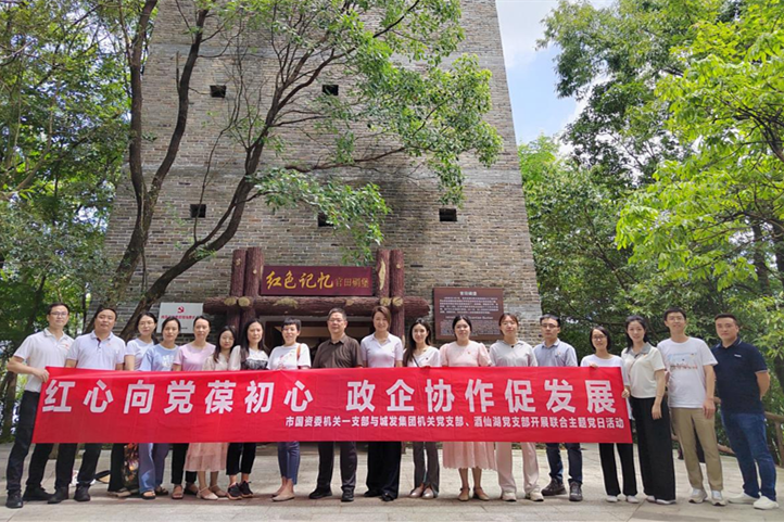 7月24日,市国资委机关第一党支部与城发集团机关党支部、酒埠江党支部赴攸县酒仙湖红色教育基地联合开展“红心向党葆初心 政企协作促发展”主题党日活动。市国资委原党委委员、总经济师傅永东及三个支部全体党员参与活动。