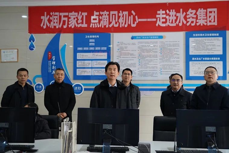 在现场,刘飞勇认真听取了集团基本情况、供水覆盖范围、水价结构以及全市供水格局基本情况介绍,详细询问了低温雨雪天气供水保障、冰冻爆管成因及应急处置等情况。