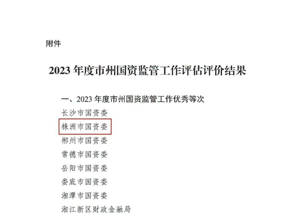 近日,湖南省国资委对14个市州和湘江新区国资监管机构2023年度国资监管工作进行了评估评价,株洲市国资委等8个单位获评“优秀”等次,另有7个单位获评“良好”等次。