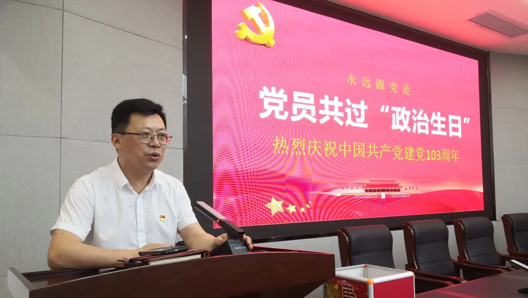 为弘扬党的光荣传统,使党员牢记入党初心,强化党性观念和纪律意识,激发党员的责任感和荣誉感,7月1日市国资委组织全体党员齐聚一堂为党庆生,举行庆祝中国共产党成立103周年暨党员共过“政治生日”活动。