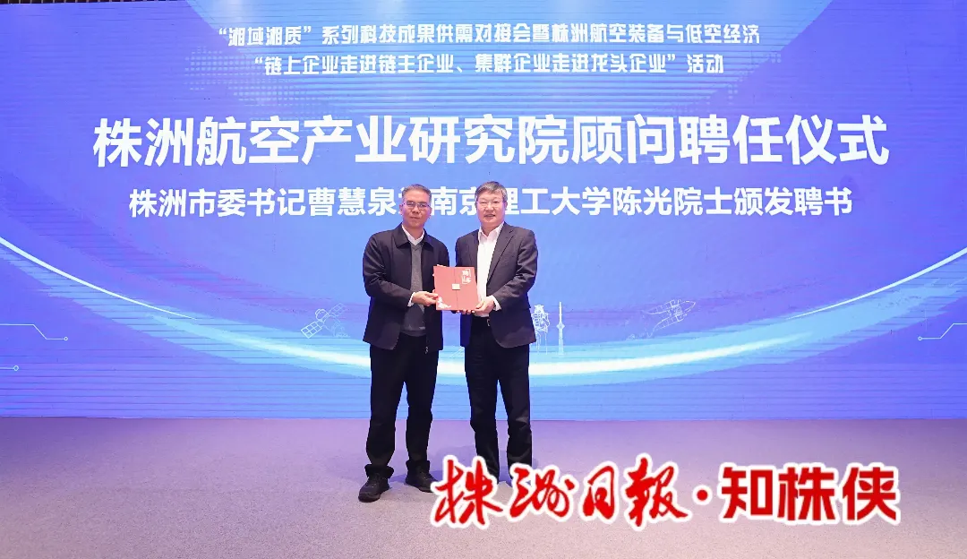 3月28日上午,“湘域湘质”系列科技成果供需对接会暨株洲航空装备与低空经济“链上企业走进链主企业、集群企业走进龙头企业”活动举行。中国科学院院士、南京理工大学教授陈光出席并受聘为株洲航空产业研究院顾问,市委书记曹慧泉出席并为陈光院士颁授聘书,市委副书记、市长陈恢清出席。