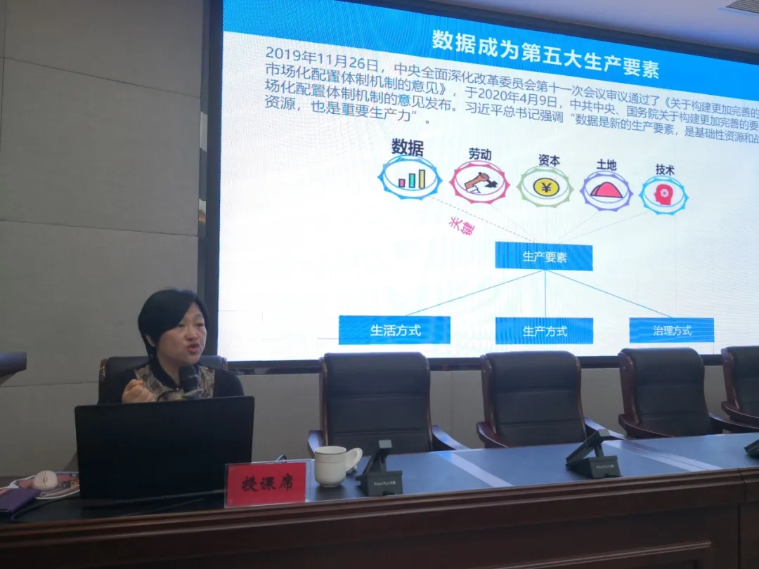培训特邀北京铜牛信息科技股份有限公司执行副总经理、中国通信学会信创技术委员会特聘专家李彩虹老师授课。李彩虹老师围绕“数据要素与数字经济发展”这一主题,结合国家政策和行业实践路径进行了深入浅出的讲解,并通过实际案例、详实数据以及前沿理论观点,为在场学员今后开展数据资产管理工作提供了基本遵循和有益参考。