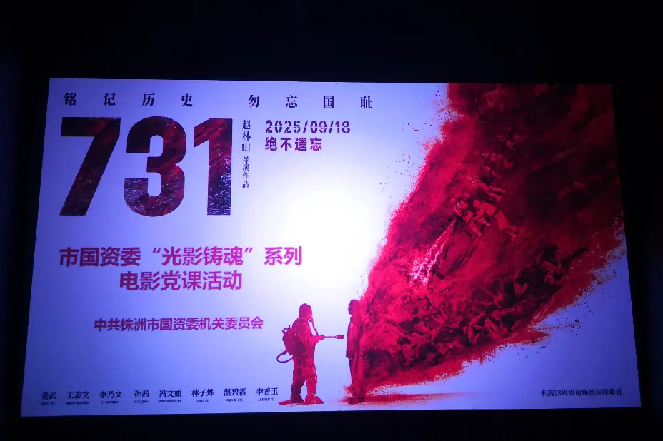 机关党委传达了活动有关文件精神,重温并深入学习习近平文化思想和习近平总书记考察湖南重要讲话精神,组织党员走进影院,观看9月18日起在全国公映的电影《731》。影片以侵华日军731部队在中国东北对中国同胞,还有国际人士进行惨绝人寰、触目惊心的细菌实验为背景,通过一个小人物的曲折命运,揭露了731部队的滔天罪行。