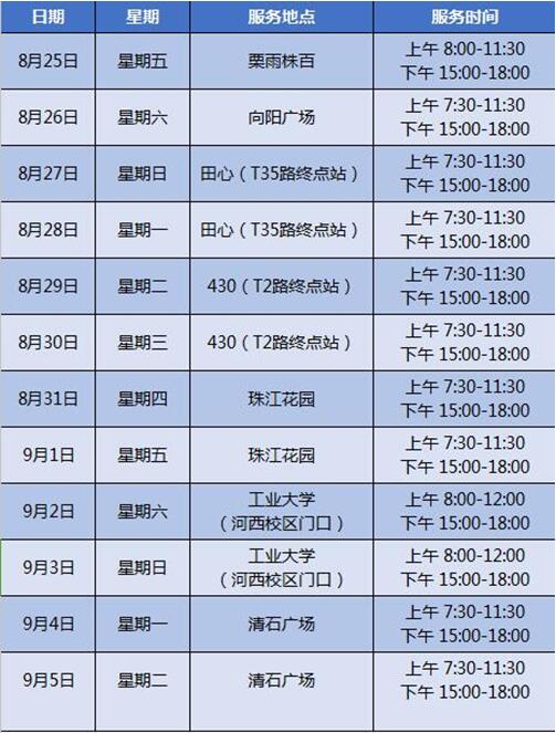 8月25日至9月5日株洲公交IC卡流动充值车将服务栗雨株百、向阳广场、田心、430、珠江花园、工业大学、清石广场等区域,有需要的市民朋友,可以就近办理办卡和充值哦~