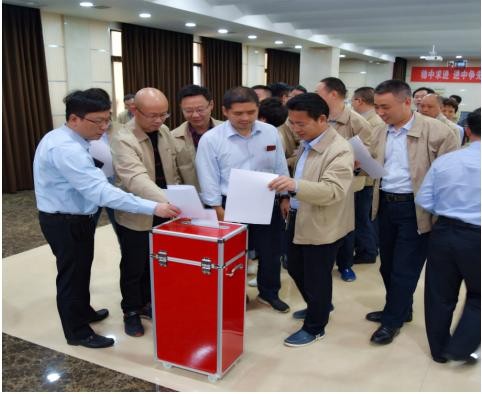 王昆就民主测评表的填写进行详细说明,强调了工作纪律要求。随后,与会人员对公司领导班子从政治建设、思想建设、领导能力、工作实绩、作风纪律建设和履行基层党建工作责任情况等六个方面,对领导干部从德、能、勤、绩、廉和履行基层党建工作责任情况等六个方面,以及选人用人工作情况进行了民主测评。
