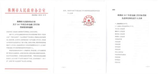 国信财富集团下属担保公司、小贷公司荣获 2017年“株洲市金融工作目标考核先进单位”