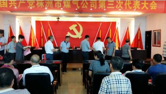 中国共产党株洲市煤气公司第三次代表大会于5月27日上午在庄严的《国歌》声中在公司办公楼会议室开幕,来自公司在职全体党员及退休党员代表共105人参加了会议。会议由市煤气公司党委委员、副总经理皮小青主持,市国资委党委委员、副主任欧阳光,市城发集团党委书记、董事长谭跃飞,市城发集团董事会办公室主任、党群部副部长裴水潭参加会议。