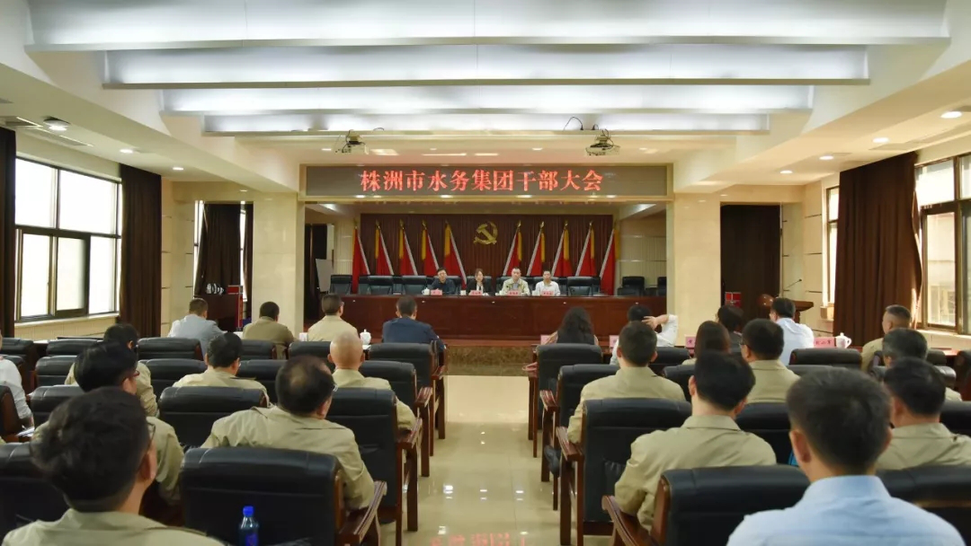10月27日下午,市水务集团召开干部大会。市委组织部副部长、市委老干部局局长吴佳辉,市国资委党委委员、副主任罗贵斌,市委组织部公务员办主任、干部一科副科长李清出席会议,公司领导班子成员及中层正职以上管理人员参加。集团公司党委书记、董事长谢锦辉主持会议。