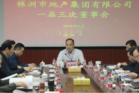 2019年3月20日上午,株洲市地产集团有限公司第一届董事会第三次会议在集团公司十三楼会议室召开,会议由集团党委书记、董事长王勇明主持,董事会及监事会全体成员参加了此次会议。