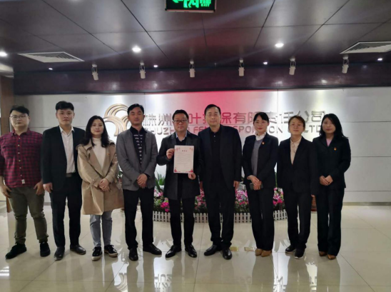 近日,市政府金融办副主任易正坤、银行科以及兴业公司相关人员为株洲国投集团子公司株洲丰叶融资担保有限责任公司(以下简称“丰叶融担公司”)送达市委常委、副市长左琳的《表扬信》。