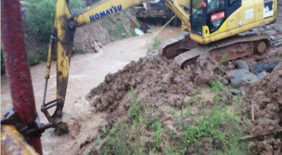 下午6时许,基础公司针对云瑞桥下河道过水面积过窄问题,立刻安排挖机对河道进行疏通,拓宽河道方便泄洪。晚上9时许,集团领导紧急部署,下发《关于做好防汛防灾工作的紧急通知》,要求各子公司严格执行经营管理层带班24小时进行值守及巡查,迅速深入现场排查安全隐患。晚上10时许,磐龙世纪城A区积水严重,置业公司经营管理层立刻到现场指挥排水。晚上11时许,盘龙湖片区、大数据片区、华强片区公司负责人分别带队对片区内进驻项目进行现场巡查。晚上12时许,因上游云峰湖开闸泄洪,龙母河水位迅速上涨,致使进出污水处理厂的临时钢便桥被洪水冲走,水位一度超过河岸,雨水倒灌进入污水处理厂临时施工板房,污水处理公司立刻安排施工人员板房内住宿人员撤离。
