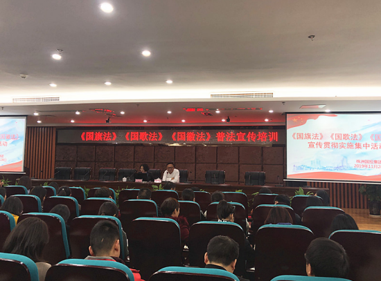 11月28日下午,国投集团开展关于《国旗法》《国歌法》《国徽法》宣传贯彻实施的集中学习活动。本次活动由集团副总经理张文澍主持,法律事务部部长李晓芳主讲,近百名员工参加了本次活动。