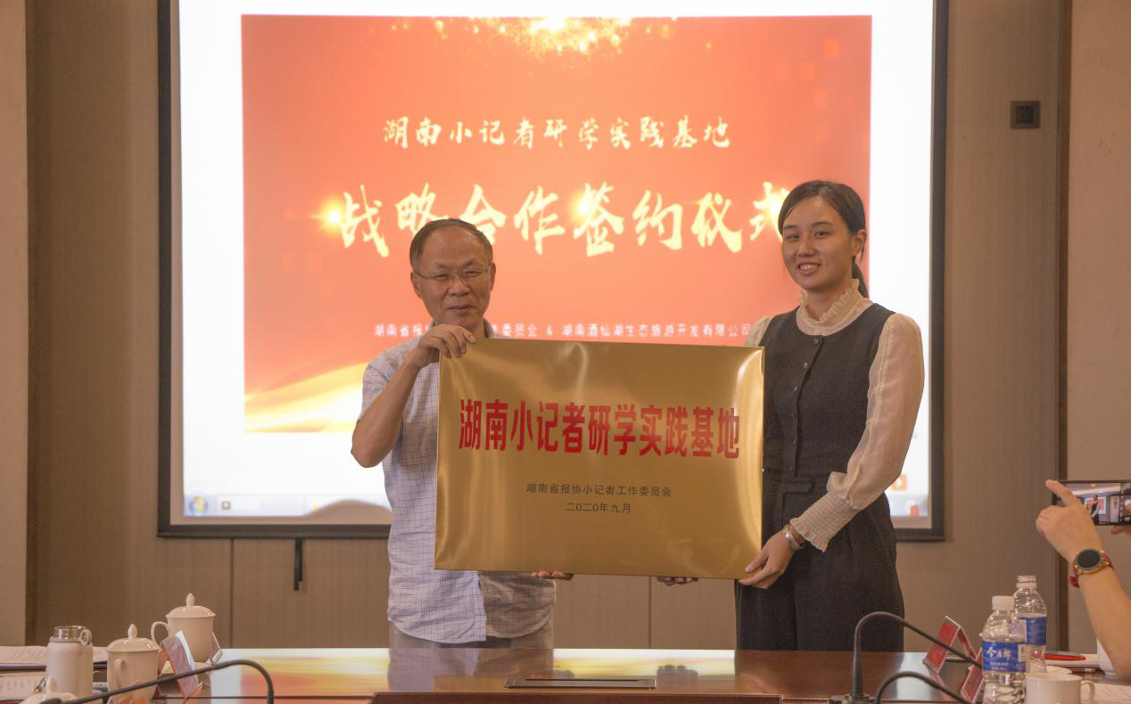 9月8日,湖南省报协小记者工作委员会与集团下属酒仙湖公司在同心湖酒店签署酒仙湖研学战略合作协议,并将首块“湖南小记者研学实践基地”的牌子授予酒仙湖学生社会实践基地。湖南省报协小记者工作委员会主任刘松杨,株洲日报社党组成员、副总编辑张绿林以及湖南省地州市11家报社媒体,酒仙湖公司董事长易大友、总经理易溪等参加战略合作签约仪式。