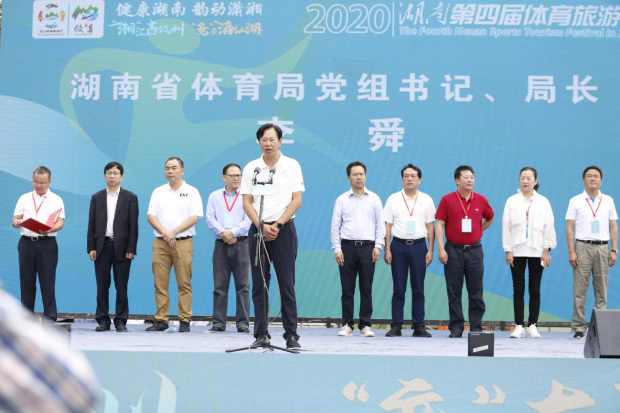 9月19日上午,2020湖南第四届体育旅游节在株洲攸县酒仙湖景区开幕。湖南省体育局党组书记、局长李舜,湖南省文化和旅游厅一级巡视员王超祥,中共湖南省委宣传部部务会成员、省文资委专职副主任刘尤碧,株洲市人民政府副市长杨胜跃,攸县县委书记康月林,城发集团党委书记、董事长谭跃飞等领导出席开幕式,湖南省部分县区文旅、体育部门负责人和运动员、裁判员1000多人参加活动。