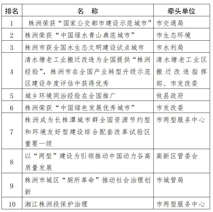 2020年度“株洲市十大两型人物、十大两型重大事件和十大两型建设项目”名单公示