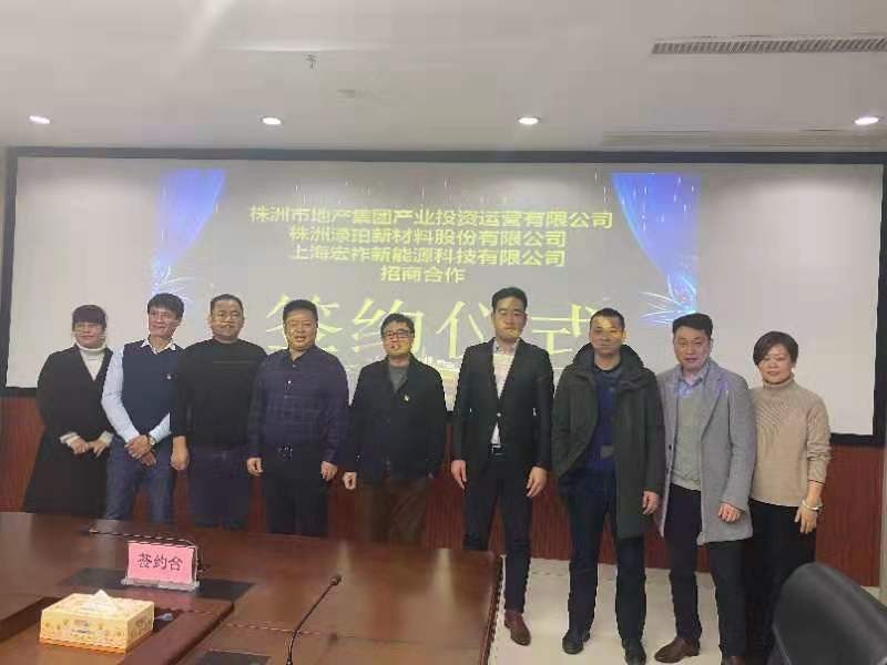 12月14日,市地产集团旗下产业投资公司与上海宏祚新能源科技有限公司、株洲市渌铂新材料股份有限公司签订招商意向协议。