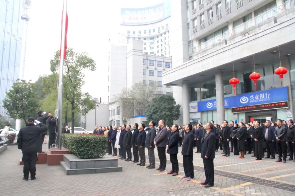 2021年上班第一天清晨,市城发集团全体领导干部职工齐聚集团大楼前坪,共同见证五星红旗冉冉升起的庄严时刻。