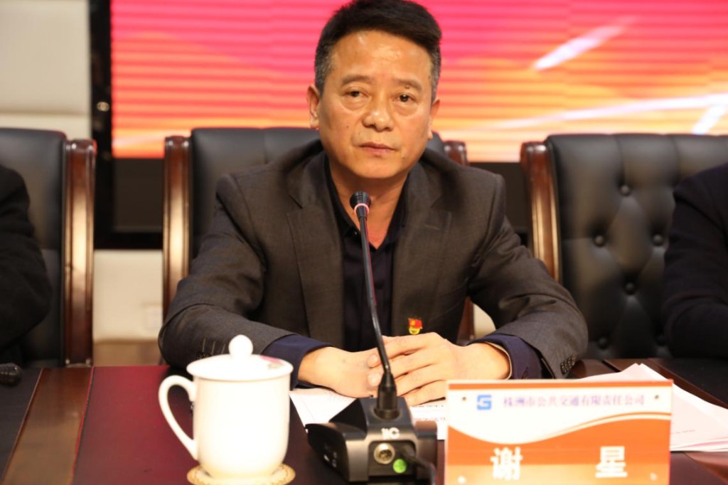 (市公交公司党委副书记、总经理李柏坚主持会议)