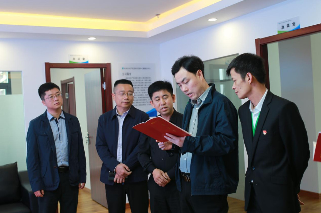 李二超一行实地考察了农交中心市级交易场所和醴陵分中心,详细了解市县两级农村产权流转交易市场建设、运行和业务开展情况,并就农村产权交易市场发展定位、政策支持、业务开展等方面进行座谈交流。