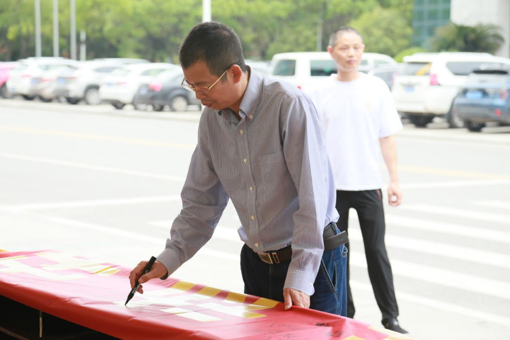 天桥起重职工们郑重签上自己的一份“承诺”