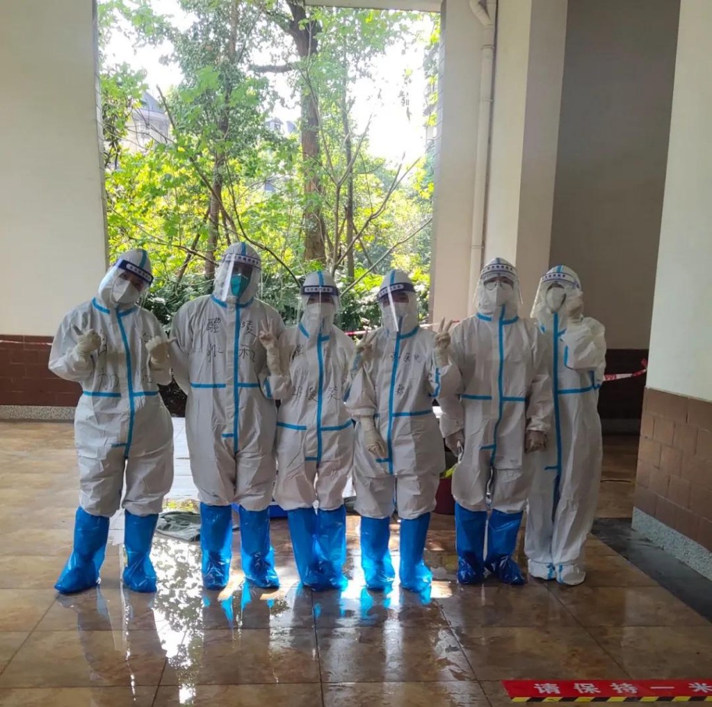 核酸检测过程中突降暴雨,灡山公司李振宇为了居民和核酸检测试剂不被淋湿,站在雨里坚持做完信息采集工作,脱下防护服时已全身湿透。