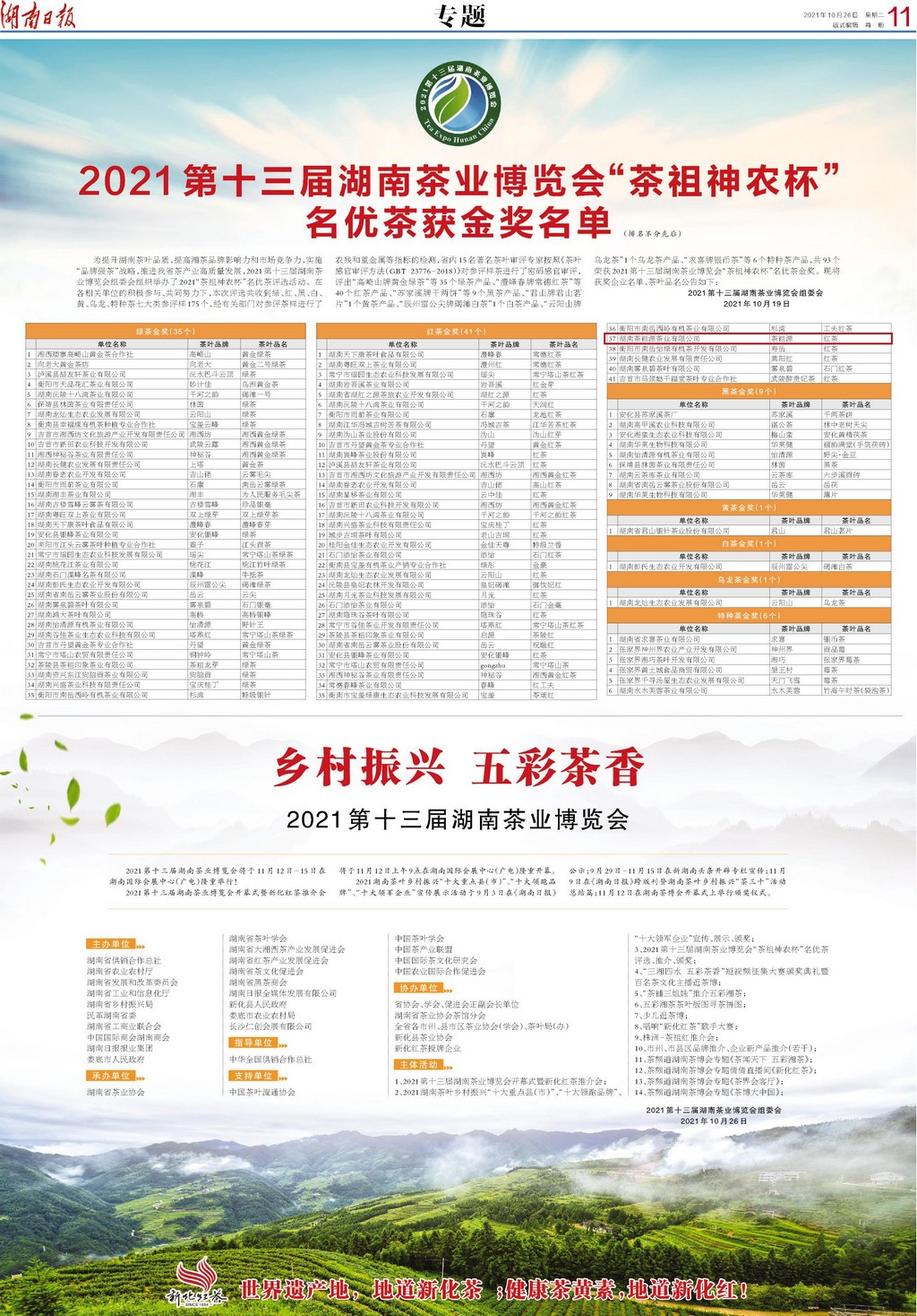 同时,茶祖源红茶在2021“茶祖神农杯”名优茶评选活动中被评定为金奖。