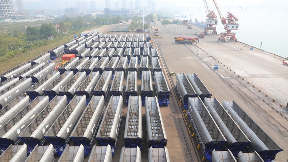 3月14日,株洲港码头货轮满载株洲中车长江车辆厂生产的火车,通江达海出口澳大利亚,再一次向世界推广株洲制造。