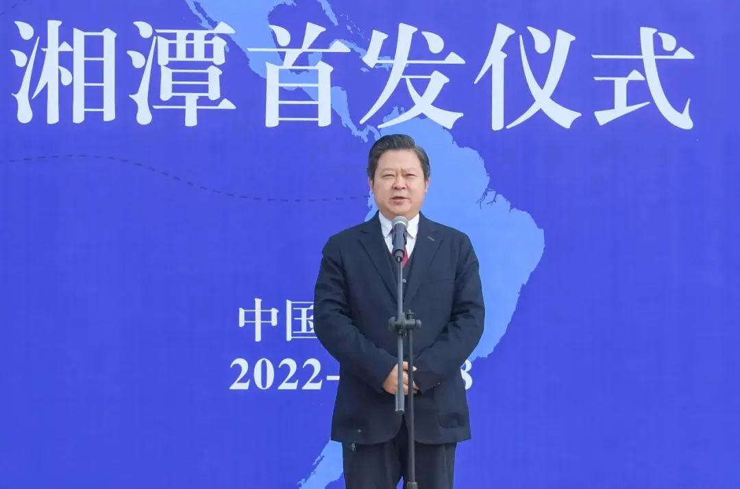 3月28日上午,“湘粤非”湖南吉利汽车出口班列在湘潭市综保区正式发运,160辆湘潭产吉利汽车将从株洲经铁路发车至黄埔港,转海运后预计于4月7日抵达马来西亚巴生港。这标志着湘潭市正式融入“湘粤非铁海联运”通道,成为第一个以接续方式使用、依托国际物流通道走出去的市州。湘潭市委书记刘志仁出席仪式并宣布“湘粤非”湖南吉利汽车出口班列发运。湖南省口岸办主任郭宁,国家粮食和物资储备局湖南局分党组副书记、副局长王军,以及湘潭市委其他分管领导、湘粤飞国际物流公司、吉利汽车有关负责人参加仪式。