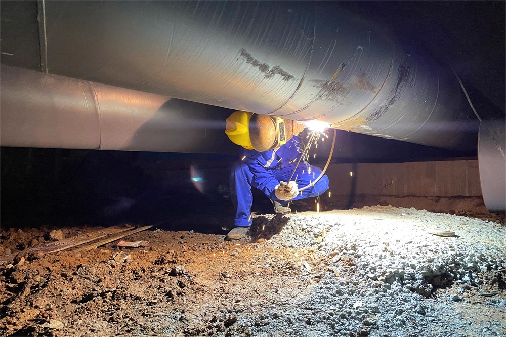 “事虽难,做则必成”。水务集团派出客户服务中心和建安二分公司精兵强将成立工作专班,内外协调,争取施工时间和工作面,安排专人坐镇现场调度指挥,采用人工托管和现场焊接的方式进行施工,全力推进项目建设。