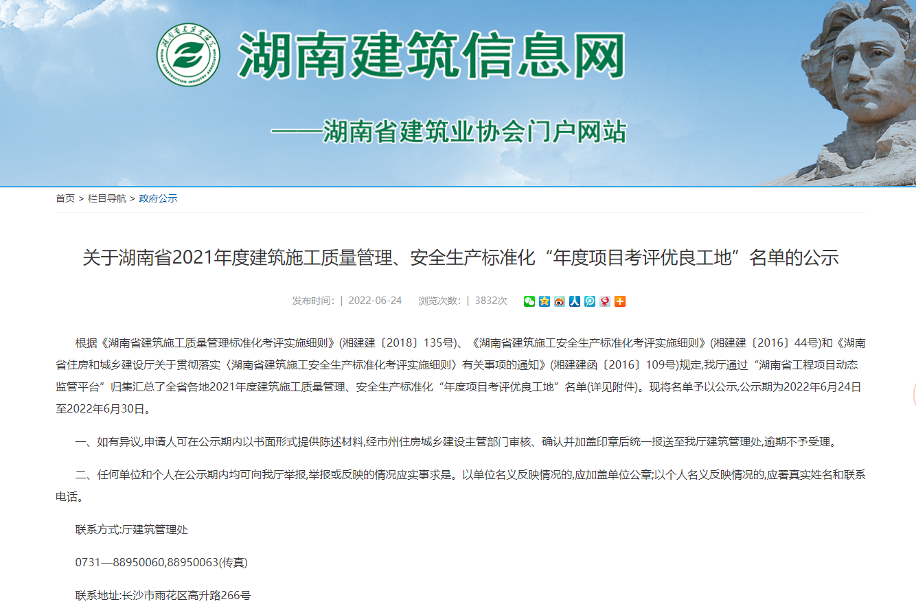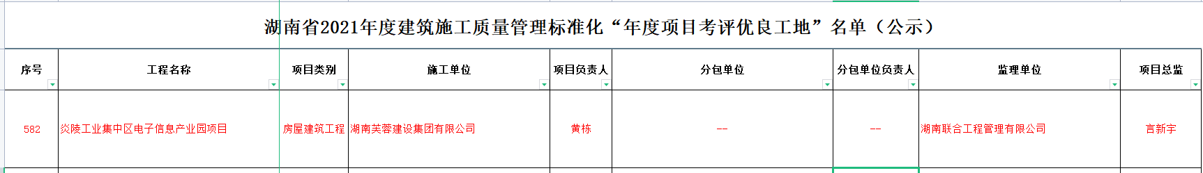 近日,湖南省住房与城乡建设厅公布了2021年度建筑施工质量管理、安全生产标准化“年度项目考评优良工地”名单,恭喜地产集团负责开发建设的炎陵工业集中区电子信息产业园(一期)项目获得湖南省2021年度“项目考评优良工地”荣誉称号。