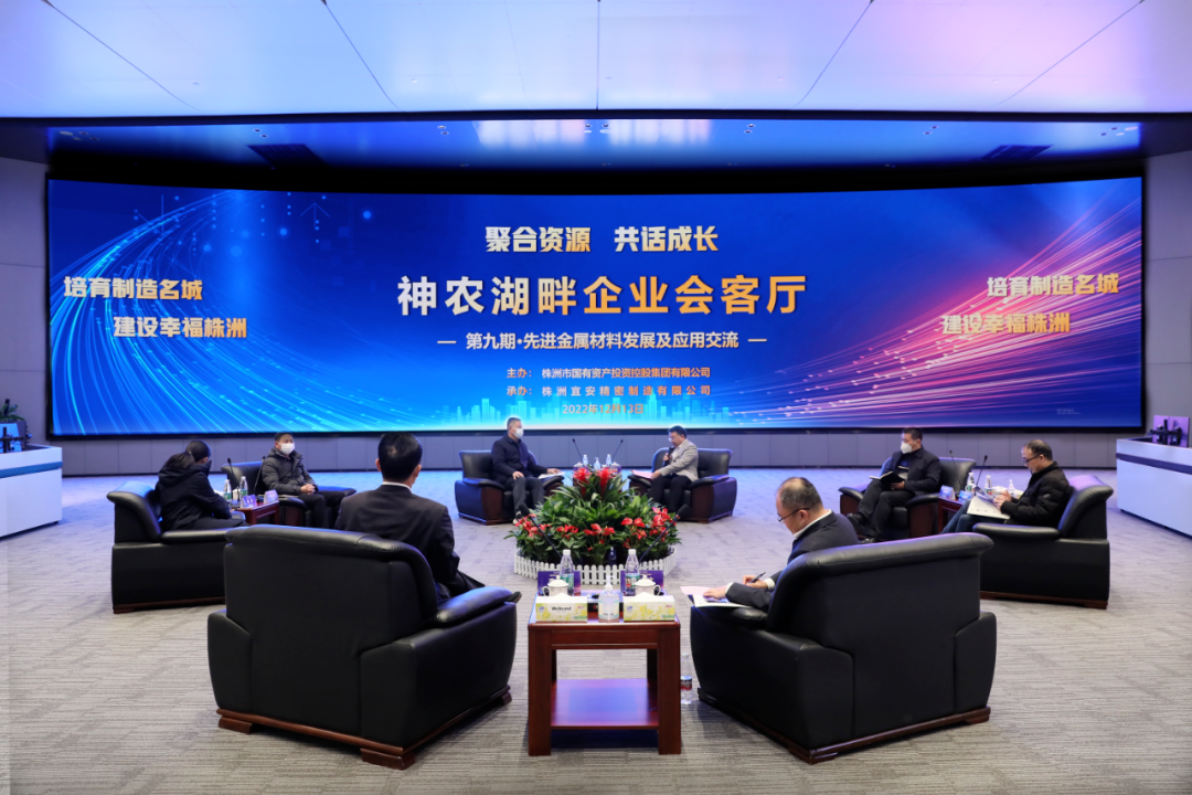 12月13日,市国投集团举办神农湖畔企业会客厅(第九期)活动,邀请了来自中南大学变形镁合金研究中心、湖南大学汽车车身先进设计制造国家重点实验室、湖南株冶火炬新材料有限公司、株洲市四兴机械有限公司、中车时代电动汽车股份有限公司、株洲宜安精密制造有限公司等先进金属材料行业的专家及企业家聚首,聚焦创新、分享经验、感悟成长,共话先进金属材料产业新发展。