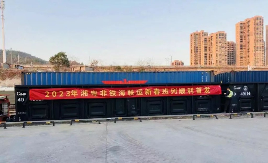 1月29日,湘粤非铁海联运班列迎来2023年新春首发,在株洲中车物流57个40尺大柜顺利发运。本次发运货物主要是株洲本地化工产品、湖南装备制造产品,预计2月1日将抵达华南港区后,装船出口至东南亚和拉非地区。